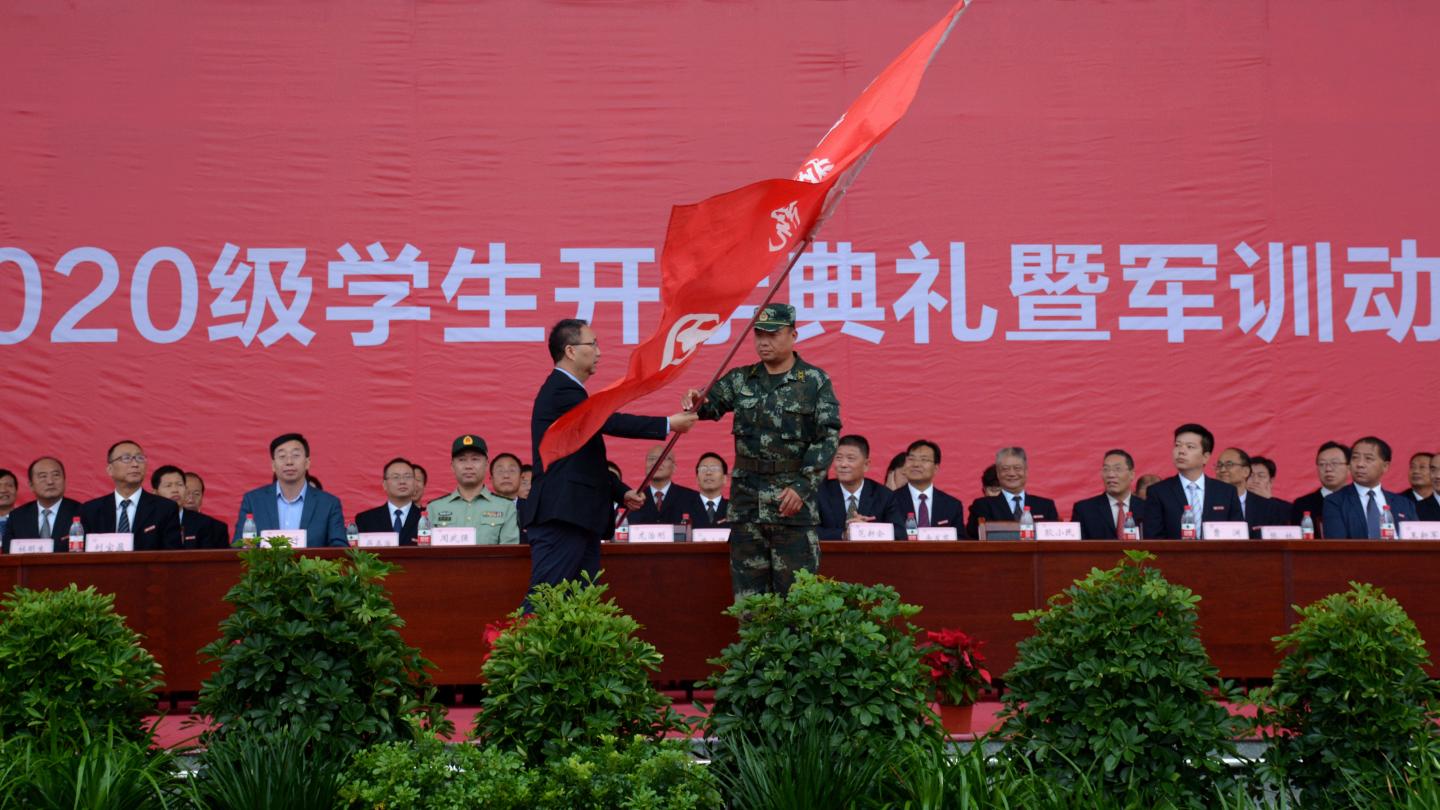 大會伊始,全體起立,奏唱國歌,升國旗。龍治剛為2020級學生軍訓團授團旗,范新會講話,劉寶盈宣讀2020級新生獎學金表彰決定,出席大會的校領導與嘉賓為獲獎新生頒獎。