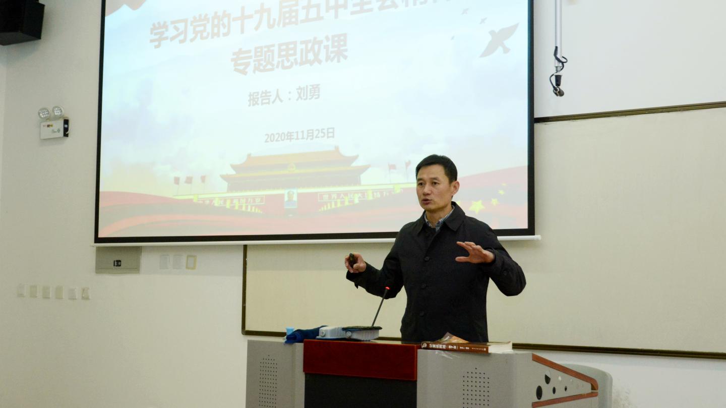 校黨委副書記劉勇在講授中強調(diào),深入學(xué)習(xí)貫徹黨的十九屆五中全會精神,就是要加強黨對教育工作的全面領(lǐng)導(dǎo),深刻理解和把握我國2035年遠(yuǎn)景目標(biāo)和“十四五”主要目標(biāo),充分認(rèn)識其中凸顯的以人民為中心的發(fā)展思想,聚焦新發(fā)展階段、新發(fā)展理念、新發(fā)展格局和貫穿其中的高質(zhì)量、可持續(xù)發(fā)展要求,聚焦提升教育質(zhì)量、推動內(nèi)涵式發(fā)展。他指出,高質(zhì)量發(fā)展離不開高素質(zhì)人才的支撐,廣大青年學(xué)子要立志高遠(yuǎn),在新發(fā)展格局中找準(zhǔn)自己的位置,從小事做起,不厭其小、以促其大,在報效祖國、服務(wù)社會中實現(xiàn)自身價值。