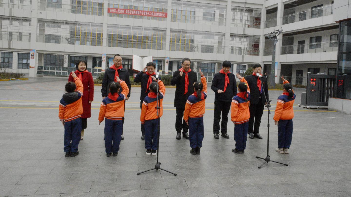 12月2日,商洛學(xué)院附屬小學(xué)、附屬幼兒園揭牌儀式在商州區(qū)第六小學(xué)舉行。校黨委書記龍治剛,副校長劉寶盈,商州區(qū)人民政府副區(qū)長趙新選,商州區(qū)科教體局黨委書記、局長張雪平出席儀式并共同揭牌,商州區(qū)第六小學(xué)、第十二幼兒園正式成為商洛學(xué)院附屬小學(xué)、附屬幼兒園。