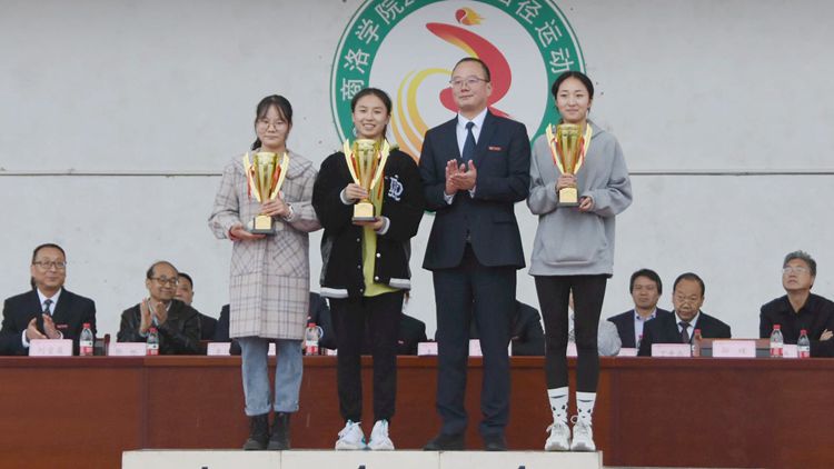 在熱烈的掌聲中,黨委書記龍治剛為獲得體育道德風尚獎的團體頒獎,校長范新會為男女團體總分前三名頒獎,副校長郭瑾為男子及女子團體總分前三名頒獎。