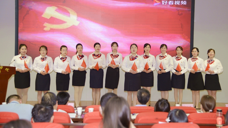 表彰大會(huì)上,圖書(shū)館館員們集體表演了紅色詩(shī)歌朗誦《黨旗飄飄》,學(xué)生代表誦讀了紅色經(jīng)典《可愛(ài)的中國(guó)》。他們用最溫暖的文字、最動(dòng)情的聲音、最深情的語(yǔ)句,歌頌偉大的中國(guó)共產(chǎn)黨,歌頌偉大的祖國(guó),表達(dá)了為共產(chǎn)主義事業(yè)奮斗終身的堅(jiān)定決心。