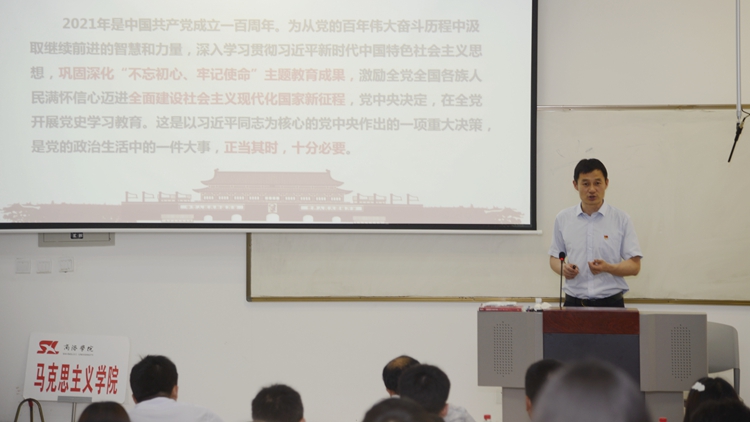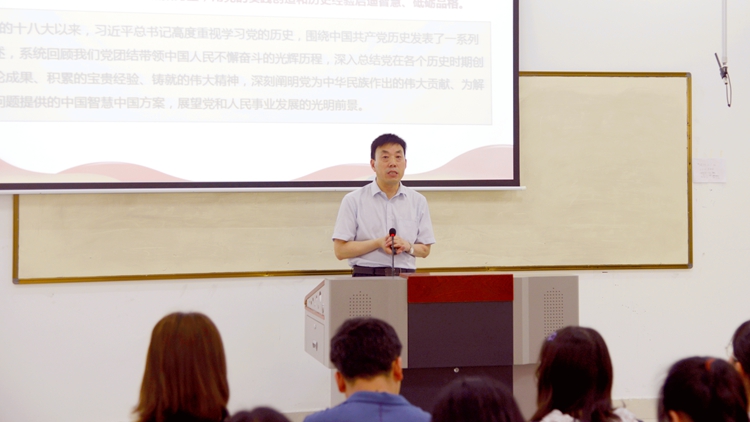 校領(lǐng)導(dǎo)彭虎軍、劉勇、王新軍、郭瑾在講授中,帶領(lǐng)同學(xué)們重溫了習(xí)近平總書記在黨史學(xué)習(xí)教育動(dòng)員大會(huì)上的重要講話精神,闡明“學(xué)史明理、學(xué)史增信、學(xué)史崇德、學(xué)史力行” 的目標(biāo)要求,從“深入學(xué)習(xí)領(lǐng)會(huì)習(xí)近平總書記關(guān)于黨史的重要論述、充分認(rèn)識(shí)開展黨史學(xué)習(xí)教育的重大意義;認(rèn)真研讀黨史基本著作、全面了解中國(guó)共產(chǎn)黨百年輝煌;深刻把握黨史學(xué)習(xí)教育的重點(diǎn);學(xué)懂弄通做實(shí)習(xí)近平新時(shí)代中國(guó)特色社會(huì)主義思想,增強(qiáng)‘四個(gè)意識(shí)’、堅(jiān)定‘四個(gè)自信’、做到‘兩個(gè)維護(hù)’”等四個(gè)方面作了深入淺出的講解。引導(dǎo)同學(xué)們把學(xué)黨史和悟思想貫通起來(lái),自覺以習(xí)近平新時(shí)代中國(guó)特色社會(huì)主義思想特別是習(xí)近平總書記關(guān)于黨史的重要論述為根本遵循,樹立正確黨史觀,準(zhǔn)確把握黨的歷史發(fā)展的主題主線、主流本質(zhì),理清黨史重大事件、重要會(huì)議、重要人物,深刻理解“中國(guó)共產(chǎn)黨為什么能、馬克思主義為什么行、中國(guó)特色社會(huì)主義為什么好”,樹立正確的世界觀、人生觀和價(jià)值觀,把實(shí)現(xiàn)個(gè)人價(jià)值、奮斗目標(biāo)、人生理想和國(guó)家的前途命運(yùn)結(jié)合起來(lái),堅(jiān)定理想信念,立大志、明大德、成大才、擔(dān)大任,努力成為堪當(dāng)民族復(fù)興重任的時(shí)代新人。
