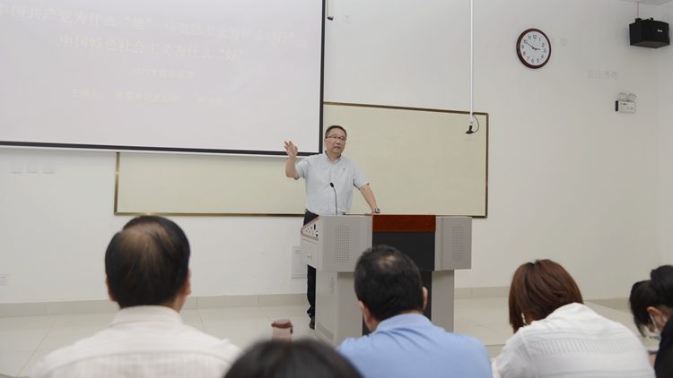 在生物學(xué)院課堂上,黨委書記龍治剛以《中國(guó)共產(chǎn)黨為什么“能”、馬克思主義為什么“行”、中國(guó)特色社會(huì)主義為什么“好”》為題,從歷史維度深刻闡釋了百年黨史的偉大和輝煌,引述《共產(chǎn)黨宣言》等馬克思主義經(jīng)典文獻(xiàn)分析了中華民族百年探索實(shí)踐,闡述了馬克思主義中國(guó)化的理論成果的偉大歷史貢獻(xiàn),論證了歷史和時(shí)代為什么選擇了中國(guó)共產(chǎn)黨。龍治剛要求,全體師生要深刻認(rèn)識(shí)紅色政權(quán)來(lái)之不易、新中國(guó)來(lái)之不易、中國(guó)特色社會(huì)主義來(lái)之不易,通過黨史學(xué)習(xí)教育進(jìn)一步堅(jiān)定對(duì)馬克思主義的信仰,對(duì)社會(huì)主義、共產(chǎn)主義的信念,黨員干部要錘煉黨性、砥礪政治品格、踐履知行合一,從黨的百年歷史中汲取精神營(yíng)養(yǎng),凝聚奮進(jìn)力量,以永不懈怠的精神狀態(tài)和一往無(wú)前的奮斗姿態(tài)為國(guó)家富強(qiáng)、民族復(fù)興、人民幸福貢獻(xiàn)青春力量。