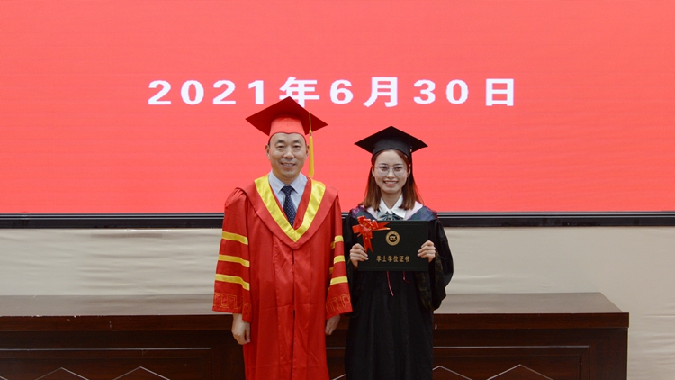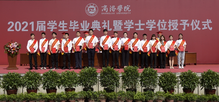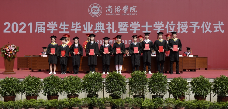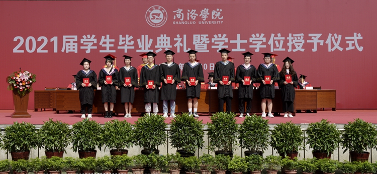 劉寶盈宣讀了2021屆畢業(yè)生資格審查結(jié)果通報(bào)、本科生學(xué)士學(xué)位授予決定、陜西省高校優(yōu)秀畢業(yè)生和優(yōu)秀學(xué)生干部名單、商洛學(xué)院優(yōu)秀畢業(yè)生表彰決定、“奉獻(xiàn)基層 服務(wù)邊疆”優(yōu)秀畢業(yè)生表彰決定、校友總會(huì)聘任2021屆校友聯(lián)絡(luò)員通知。榮悅等117名學(xué)生被授予“優(yōu)秀畢業(yè)生”榮譽(yù)稱號(hào),曾炎陽等22名同學(xué)被評(píng)為“奉獻(xiàn)基層 服務(wù)邊疆”優(yōu)秀畢業(yè)生,郭肇星等103名同學(xué)被聘任為2021屆校友聯(lián)絡(luò)員。在熱烈的掌聲中,校領(lǐng)導(dǎo)為優(yōu)秀畢業(yè)生代表頒發(fā)了證書,為校友聯(lián)絡(luò)員頒發(fā)了聘書。