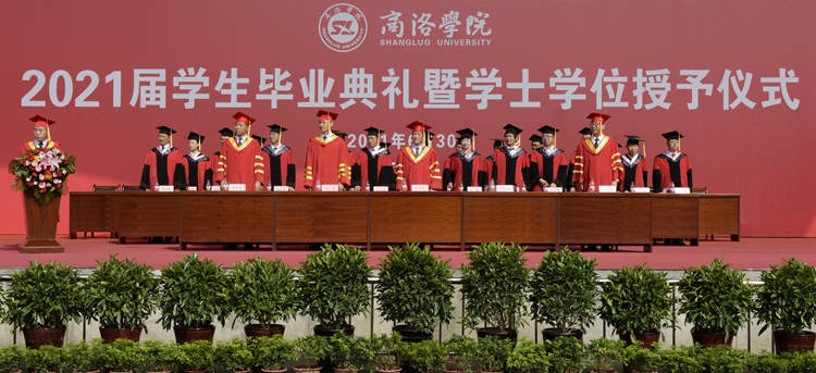 又一年,麥?zhǔn)煨狱S;又一年,桃李芬芳。6月30日,我校隆重舉行2021屆學(xué)生畢業(yè)典禮暨學(xué)士學(xué)位授予儀式。黨委副書記、校長(zhǎng)范新會(huì),黨委副書記彭虎軍、劉勇、副校長(zhǎng)劉寶盈、王新軍、郭瑾出席典禮。學(xué)位評(píng)定委員會(huì)委員,教務(wù)處、學(xué)生處、團(tuán)委主要負(fù)責(zé)人,各院(部)黨政主要負(fù)責(zé)人、學(xué)工辦主任,2021屆畢業(yè)生以及畢業(yè)班輔導(dǎo)員和班主任參加典禮。學(xué)校在丹江校區(qū)開啟同步直播,全體畢業(yè)生共同見證了這一難忘時(shí)刻。畢業(yè)典禮由彭虎軍主持。