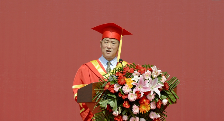 今天的典禮,既是你們的大學(xué)“畢業(yè)禮”,也是你們遠行的“啟程禮”。離別之際,我以《正道直行 用奮斗點亮人生之光》為題,送給大家三句話,以此表達我和全校老師,對你們的美好祝福!