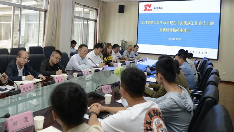 9月17日,我校召開學(xué)習(xí)貫徹習(xí)近平總書記在中央民族工作會議上的重要講話精神座談會。黨委書記張志昌出席會議并講話。黨委副書記彭虎軍主持會議。統(tǒng)戰(zhàn)部、學(xué)工部、團委負責(zé)人,輔導(dǎo)員代表及少數(shù)民族師生代表參加會議。