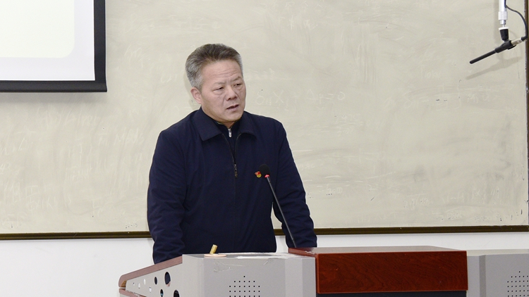 (左到右依次為黨委副書記彭虎軍、劉勇,副校長劉寶盈、王新軍宣講)