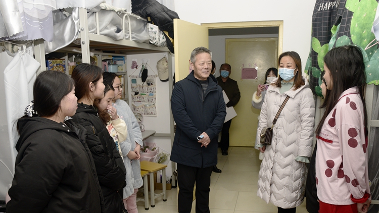 在與學(xué)生交流中,校領(lǐng)導(dǎo)詳細詢問了疫情期間學(xué)生們的思想動態(tài),在生活和學(xué)習(xí)上遇到的困難和問題,向同學(xué)們致以新年祝福,并叮囑同學(xué)們要做好個人防護,盡量減少外出,注意勞逸結(jié)合,妥善安排好學(xué)習(xí)和生活,有困難及時向?qū)W校反映。校領(lǐng)導(dǎo)表示,學(xué)校將不斷提升服務(wù)保障水平,努力解決同學(xué)們學(xué)習(xí)生活中的困難,全力以赴為同學(xué)們的安全保駕護航。