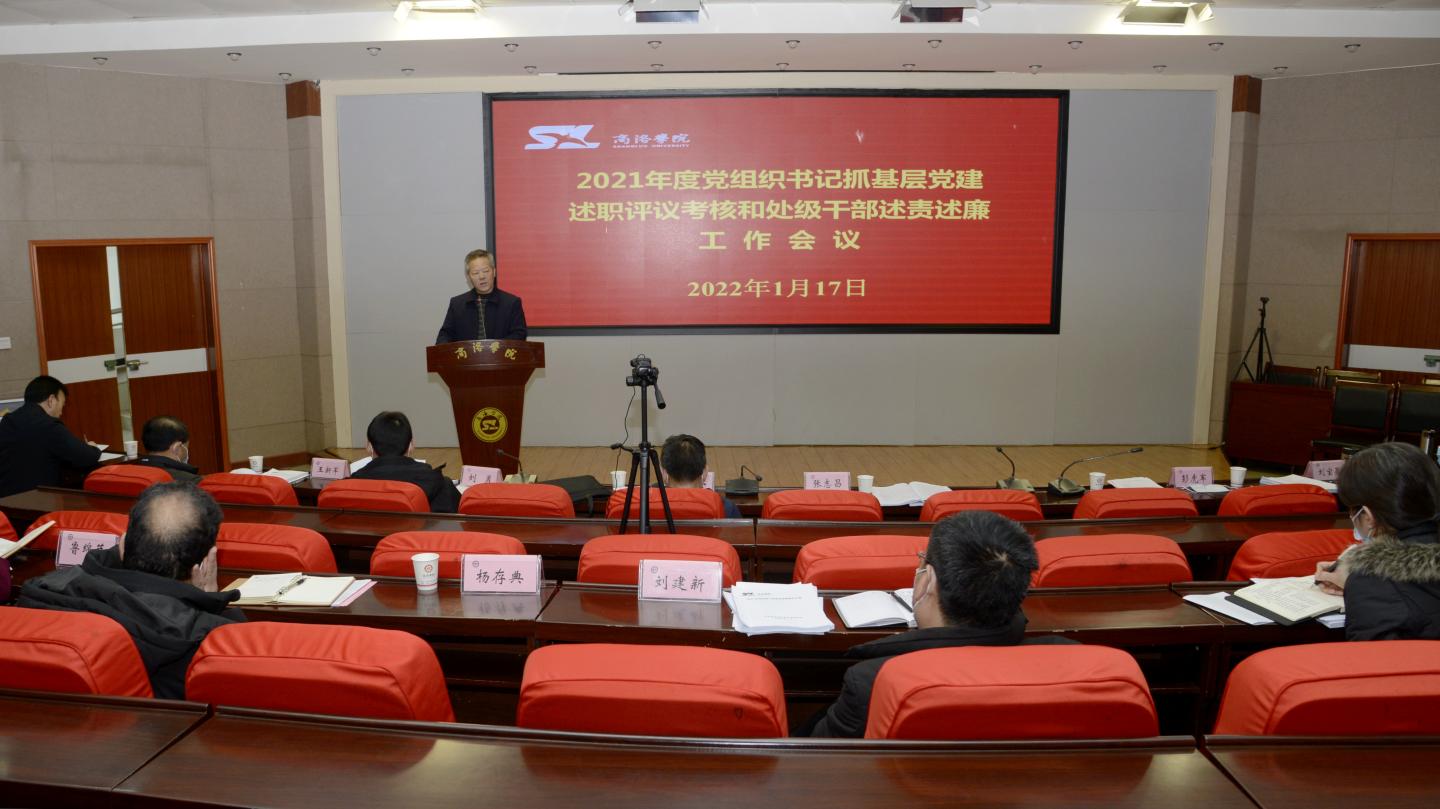 1月17日,我校采取線上線下相結(jié)合的方式召開(kāi)2021年度黨組織書(shū)記抓基層黨建述職評(píng)議考核和處級(jí)干部述職述廉工作會(huì)議,聽(tīng)取各黨總支、直屬黨支部書(shū)記履行抓基層黨建工作職責(zé)情況述職及處級(jí)干部述責(zé)述廉。全體校領(lǐng)導(dǎo)出席現(xiàn)場(chǎng)會(huì)議。校黨委委員,紀(jì)委委員參加現(xiàn)場(chǎng)會(huì)議。8名黨總支(直屬黨支部)書(shū)記及6名處級(jí)干部進(jìn)行現(xiàn)場(chǎng)述職。其余8個(gè)黨總部、直屬黨支部書(shū)記及68名處級(jí)干部人員采取書(shū)面形式述職和述責(zé)述廉?,F(xiàn)場(chǎng)會(huì)議由黨委副書(shū)記彭虎軍主持。