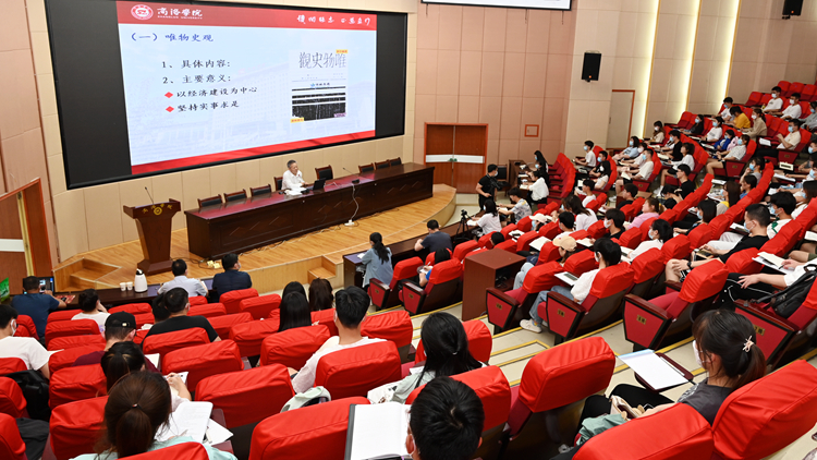 張志昌以《<共產(chǎn)黨宣言>的魅力》為題,從《共產(chǎn)黨宣言》的六個(gè)基本理論與當(dāng)代意義、深刻領(lǐng)會(huì)《共產(chǎn)黨宣言》的真理力量、習(xí)近平總書記在紀(jì)念馬克思誕辰200周年大會(huì)上的講話與《共產(chǎn)黨宣言》三個(gè)方面,系統(tǒng)闡述了《共產(chǎn)黨宣言》的基本理論知識(shí)及其蘊(yùn)含的真理力量和時(shí)代價(jià)值,結(jié)合時(shí)事動(dòng)態(tài)和精彩案例生動(dòng)活潑地為發(fā)展對(duì)象講授了一堂內(nèi)容豐富、思想深刻的黨史學(xué)習(xí)教育課。