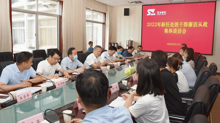 6月17日下午,我校召開新任處級(jí)干部廉潔從政集體談話會(huì),對(duì)新任處級(jí)干部履職盡責(zé)、廉潔從政提出要求。校黨委書記張志昌出席會(huì)議并講話,黨委副書記彭虎軍主持會(huì)議并作任前廉政談話。黨委委員、組織部部長張向東,紀(jì)委副書記田小莉和新任處級(jí)干部參加會(huì)議。