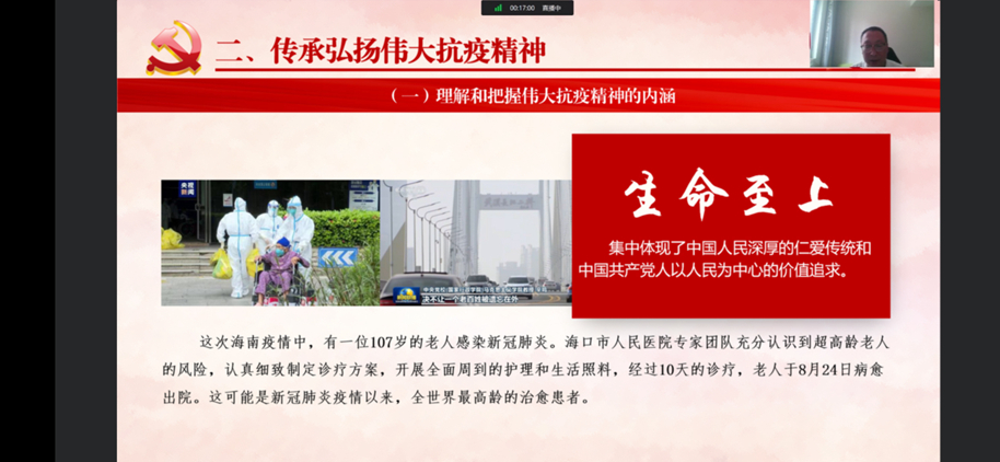 校領(lǐng)導(dǎo)的授課主題鮮明、內(nèi)容豐富、深入淺出、各具特色,既有理論高度,又有思想深度。廣大學(xué)生紛紛通過在線平臺為校領(lǐng)導(dǎo)點贊,并在留言中踴躍抒發(fā)自己傳承偉大抗疫精神、勇?lián)褡鍙?fù)興大任的信心和決心。