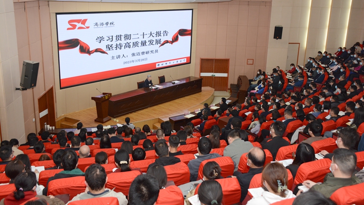 為深入學習宣傳貫徹黨的二十大精神,推動學校高質(zhì)量發(fā)展,3月28日下午,我校特邀西安交通大學原黨委書記張邁曾研究員來校作題為《學習貫徹黨的二十大報告 堅持高質(zhì)量發(fā)展》的輔導報告。校黨委書記張志昌主持報告會。校長范新會、黨委副書記彭虎軍、副校長劉寶盈出席報告會。全體科級以上黨員干部、“思政火炬”“紅色號角”宣講團成員和師生代表400余人聽取報告。