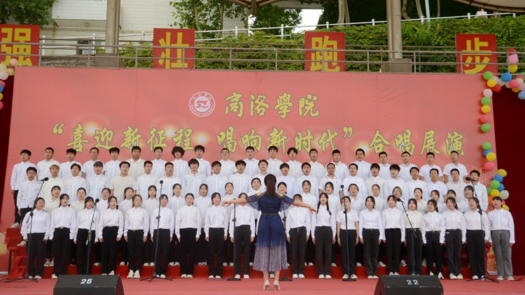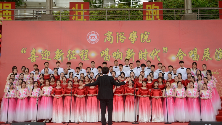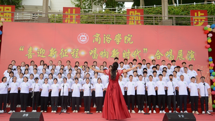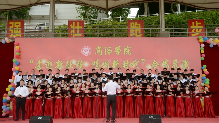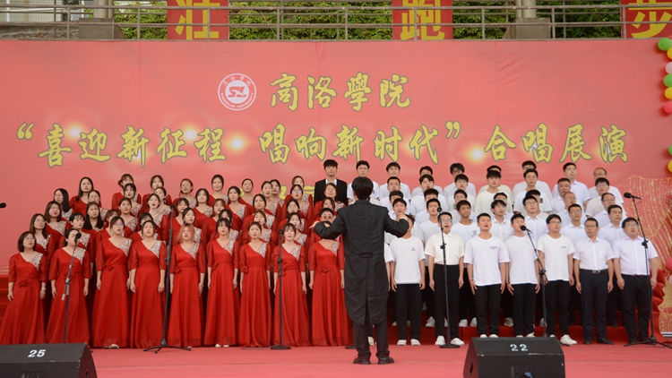展演中,10個二級學(xué)院合唱團(tuán)和教職工代表隊合唱團(tuán)依次登臺亮相,傾情演繹紅色經(jīng)典曲目,用激揚的歌聲抒發(fā)愛國情懷和強國之志,充分展現(xiàn)我校師生昂揚向上的精神風(fēng)貌?!陡璩鎳贰蹲呦驈?fù)興》《我們走在大路上》《游擊隊之歌》《強軍戰(zhàn)歌》《秦嶺最美是商洛》等歌曲逐一精彩呈現(xiàn)。一曲曲高歌催人奮進(jìn),一陣陣掌聲心潮澎湃。