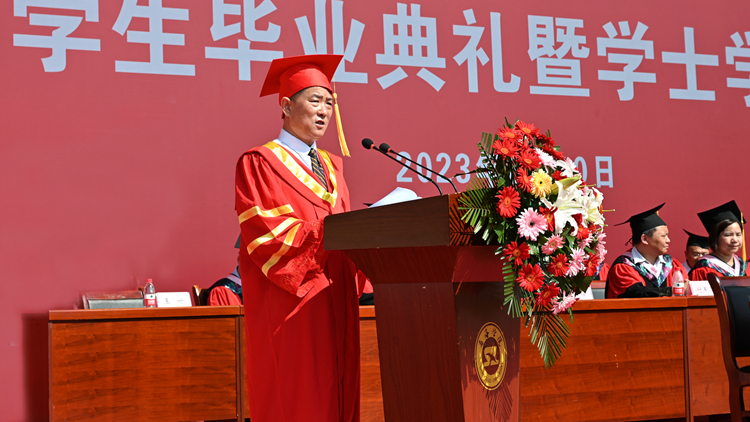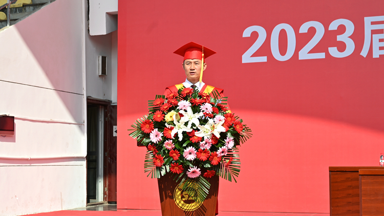 校長范新會以《志存高遠勇毅前行做不負時代的“追夢人”》為題發(fā)表了情真意切的講話。他表示,在四年的大學生活中,同學們謹遵博聞強志、正道直行校訓,正心明志、立德修身,努力學習專業(yè)知識,踴躍投身社會實踐,豐富了知識,鍛煉了體魄,增長了才干。所有同學在砥礪奮進中共同見證了學校在軟科中國大學排名中的新突破,體驗了校園環(huán)境的新提升,結(jié)識了中外合作辦學和國際創(chuàng)意課程的新同學,刷新了學校“互聯(lián)網(wǎng)+”大賽的最高成績。他希望全體畢業(yè)生在未來的人生路途中,牢記青年使命、矢志報效祖國,不負韶華、不負時代,用青春之筆書寫人生的華彩篇章。