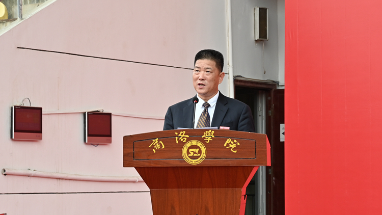 伴隨著五星紅旗冉冉升起,開學(xué)典禮在雄壯的國歌聲中拉開帷幕。校黨委書記張志昌為承訓(xùn)教官授予2023級學(xué)生軍訓(xùn)團(tuán)團(tuán)旗。校長范新會以“保持奮斗本色,踔厲奮發(fā),勇毅前行”為題,為全體新生講授“開學(xué)第一課”。朱鵬波為全體承訓(xùn)教官和新生作軍訓(xùn)動員講話。