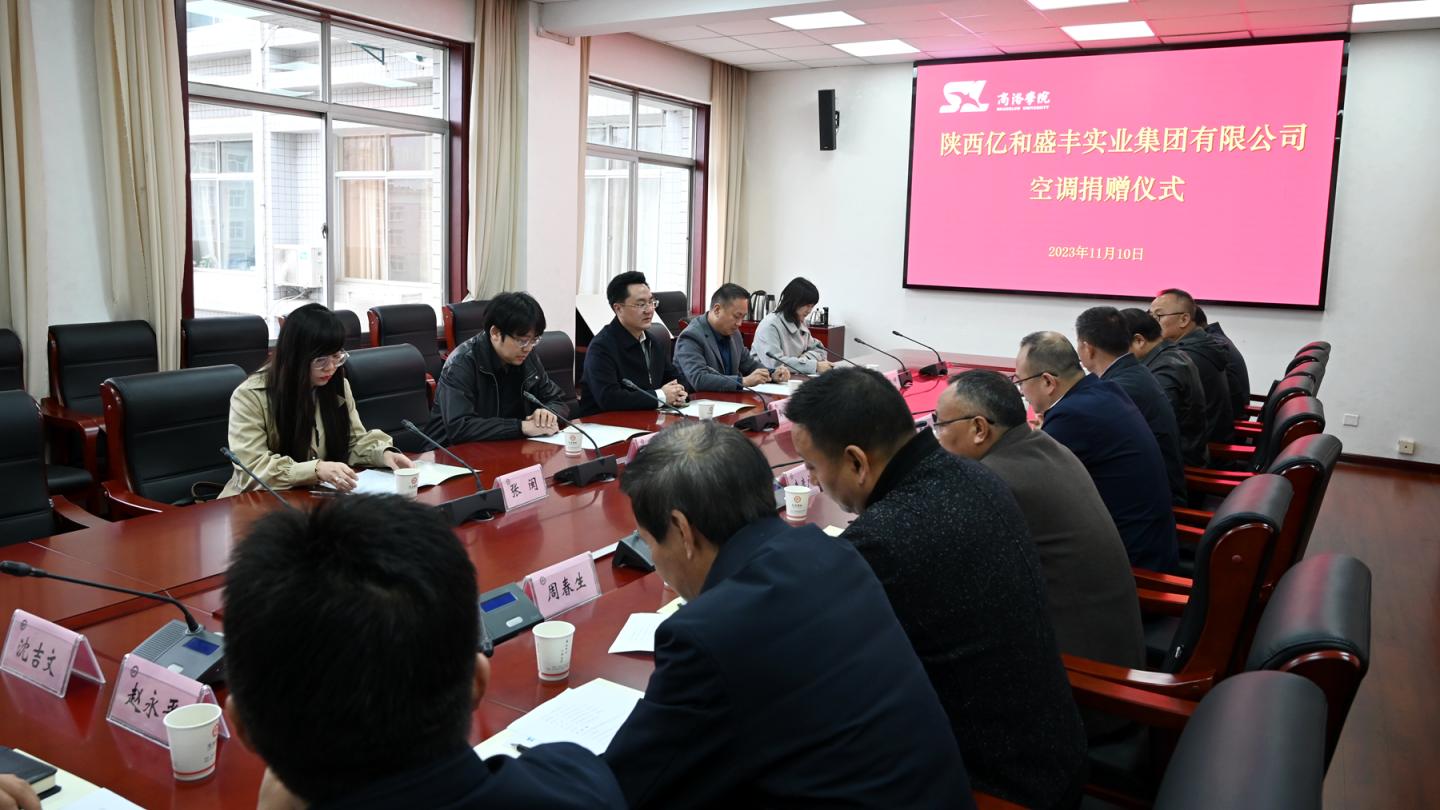 為進(jìn)一步改善學(xué)校辦學(xué)條件,經(jīng)友好協(xié)商,陜西億和盛豐實(shí)業(yè)集團(tuán)有限公司向我校丹江校區(qū)學(xué)生公寓樓C棟捐贈(zèng)價(jià)值60余萬元的176臺(tái)空調(diào)設(shè)備。11月10日,我校舉辦空調(diào)設(shè)備捐贈(zèng)儀式。陜西億和盛豐實(shí)業(yè)集團(tuán)有限公司董事局主席黃鵬、董事長黃濤出席捐贈(zèng)儀式。校長范新會(huì)代表學(xué)校接受捐贈(zèng)并向陜西億和盛豐實(shí)業(yè)集團(tuán)有限公司頒發(fā)捐贈(zèng)證書。副校長郭瑾主持捐贈(zèng)儀式并向企業(yè)頒發(fā)捐贈(zèng)牌匾。