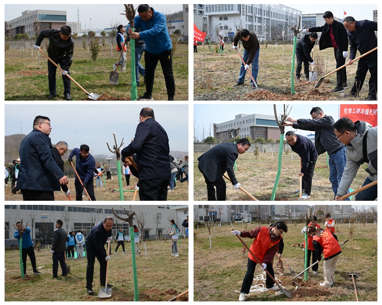 3月12日,正值第46個植樹節(jié),我校在丹江校區(qū)組織開展義務(wù)植樹活動。校長范新會,黨委副書記劉勇,黨委副書記、紀(jì)委書記王浩,副校長劉寶盈、郭瑾,相關(guān)部門負(fù)責(zé)人與50余名青年志愿者共同為校園增添新綠。