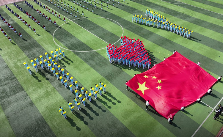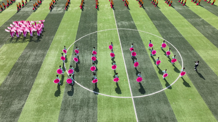 在開幕式表演中,電信學(xué)院大型團體操表演《奮進商院 禮獻祖國》驚艷綻放,240位學(xué)子在靈活變化的隊形中展露出深厚的愛國愛校之情,以無畏的勇氣和不懈的追求一起邁步向未來。健康管理學(xué)院的230余名學(xué)子步伐矯健,動作輕盈,為大家?guī)砘顫娪辛Φ睦怖膊俸拖词植俦硌?,他們用行動向大家詮釋健康的真諦,呼吁大家參與健康生活,助力商洛“康養(yǎng)之都”建設(shè)。附屬小學(xué)的少年兒童以活潑可愛的身姿帶來舞蹈《盛世歡歌》,一起祝福祖國的明天天更藍、山更綠、水更清,經(jīng)濟更繁榮、人民更幸福、國力更強盛!建工學(xué)院團體操表演以舞動的熱情撒播歡樂的陽光,用特有的創(chuàng)意和魅力展示出商院學(xué)子朝氣蓬勃的精神風(fēng)貌,通過“站起來”“富起來”“強起來”三個環(huán)節(jié),向在場觀眾勾勒出山河無恙、繁榮昌盛的盛世景象。