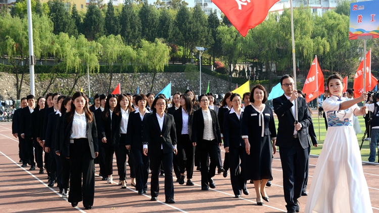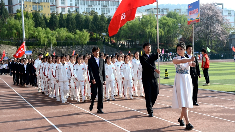 伴隨著激揚的《運動員進行曲》,國旗護衛(wèi)隊、退役士兵方陣、彩旗方陣、花環(huán)方陣、裁判隊、各二級學(xué)院師生代表隊、附屬小學(xué)、附屬幼兒園和教職工代表組成的18個方陣邁著整齊穩(wěn)重、鏗鏘有力的步伐依次走過主席臺,展現(xiàn)了我校師生昂揚向上的精神風(fēng)貌。運動員代表楊振興、裁判員代表王蒙潔分別向大會宣誓。
