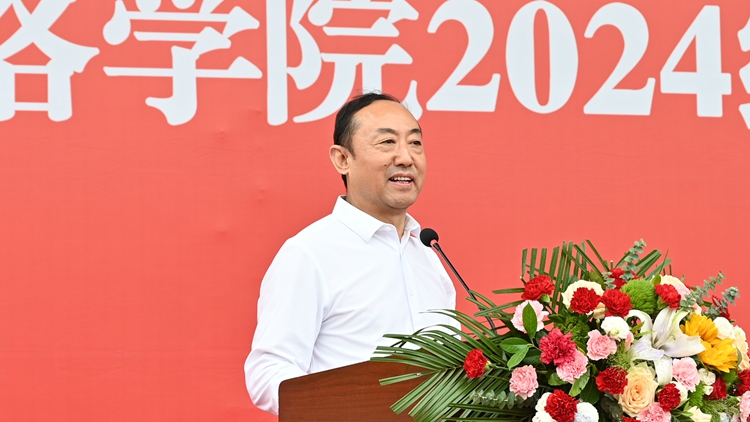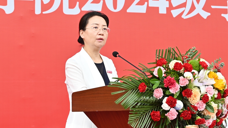 權(quán)雅寧代表學(xué)校熱烈歡迎2024級(jí)新生的到來,向承擔(dān)本次軍訓(xùn)任務(wù)的武警商洛支隊(duì)全體官兵表示崇高的敬意。她簡(jiǎn)要回顧了我校建校48年來的發(fā)展歷程和近年來學(xué)校取得的顯著成績(jī),并以《青春奮斗正當(dāng)時(shí) 不負(fù)韶華不負(fù)心》為題致辭,向2024級(jí)新生講授“開學(xué)第一課”。權(quán)雅寧寄語2024級(jí)新生,一是要做“心中有光”的青年,用心中的光照亮生命。希望同學(xué)們成為點(diǎn)燈者、照亮者、撐傘人,在成長(zhǎng)過程中護(hù)住自己的心氣、心力、心光,用光明之眼看清自己的路、看清國(guó)家和時(shí)代的方向,用光明之心照亮未來變化紛繁的路。二是要做“腳下有路”的青年,用腳下的路丈量世界。希望同學(xué)們心中有星辰大海,手中有百萬雄兵,兼有利他、利己、利物、利事的心量,爭(zhēng)做大才、大智之人。三是要做“行為有戒”的青年,用行為之戒磨礪品行。要對(duì)自己的每一個(gè)行為有所要求,在成為有志、有識(shí)、有恒的青年路上,用每一寸光陰積累點(diǎn)滴進(jìn)步。