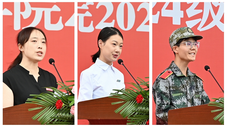 人文學(xué)院漢語言文學(xué)專業(yè)譚銀鈴、健康管理學(xué)院護(hù)理學(xué)專業(yè)李易衡分別代表在校生和2024級(jí)新生發(fā)言。