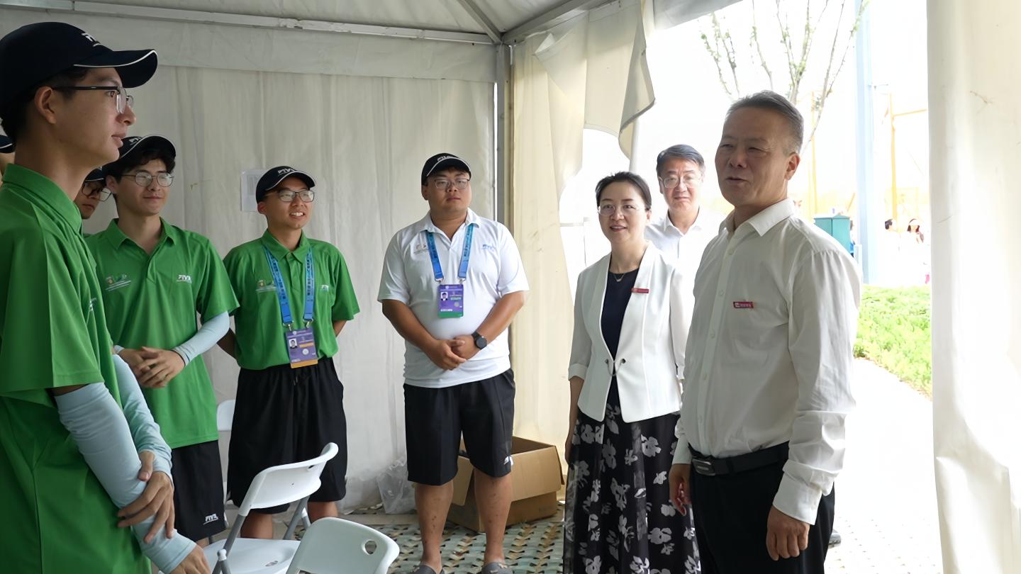 近日,2024國際排聯(lián)沙灘排球U19世界錦標賽在商洛如火如荼進行,商洛學院205名師生志愿者參加本次沙排世錦賽志愿服務工作,為賽事的順利進行保駕護航。8月30日,商洛學院黨委書記張志昌、校長權雅寧、紀委書記王浩一行前往比賽現(xiàn)場,看望慰問學校師生志愿者。
