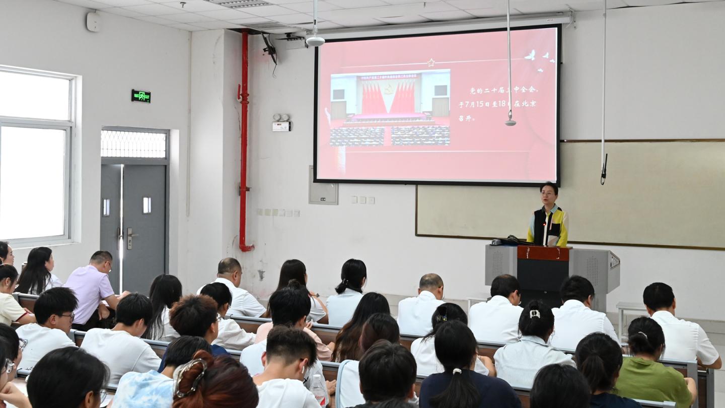 校領(lǐng)導(dǎo)在授課中介紹了黨的二十屆三中全會(huì)基本情況和重大意義,結(jié)合學(xué)校改革發(fā)展實(shí)際,深入解讀了全會(huì)對(duì)深化教育科技人才體制機(jī)制一體改革作出的重要部署。校領(lǐng)導(dǎo)指出,教育、科技、人才是中國(guó)式現(xiàn)代化的基礎(chǔ)性、戰(zhàn)略性支撐,黨的二十屆三中全會(huì)提出構(gòu)建支持全面創(chuàng)新體制機(jī)制,對(duì)深化教育綜合改革、科技體制改革和人才發(fā)展體制機(jī)制改革作出了全面部署,必將推動(dòng)學(xué)校人才培養(yǎng)體系進(jìn)一步優(yōu)化、科技創(chuàng)新活力進(jìn)一步激發(fā)、人才保障機(jī)制進(jìn)一步完善,使廣大同學(xué)獲得更加優(yōu)質(zhì)的高等教育、擁有更廣闊的發(fā)展空間,實(shí)現(xiàn)人盡其才、才盡其用。