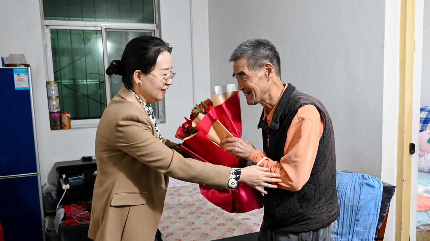 在老革命后代、老黨員代表王忠孝老師家中,權(quán)雅寧同85歲高齡的王老師親切交談,詳細(xì)了解王老師身體狀況、飲食起居,以及生活出行等方面的需求和困難。權(quán)雅寧叮囑學(xué)校相關(guān)部門要做好老教師、老同志的服務(wù)保障工作,不斷提升大家的獲得感、幸福感,也希望各位老教師、老同志為學(xué)校的發(fā)展積極建言獻(xiàn)策。
