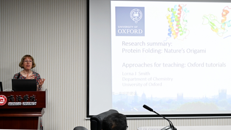 7月25日下午,牛津大學(xué)化學(xué)系教授Lorna J Smith應(yīng)邀來校交流訪問并為我校師生作題為《蛋白質(zhì)折疊:大自然的折紙藝術(shù)》的學(xué)術(shù)報(bào)告。校黨委委員、科技處處長程敏,國際合作與交流處處長張建芳,化材學(xué)院、生物學(xué)院和健康管理學(xué)院相關(guān)負(fù)責(zé)人以及相關(guān)專業(yè)師生代表參加報(bào)告會(huì)。