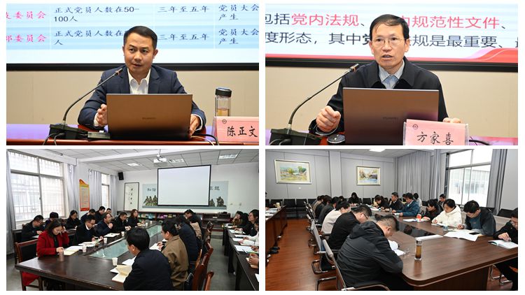 在為期兩天的培訓(xùn)中,學(xué)校邀請(qǐng)陜西省委黨校副教授陳正文、商洛市委機(jī)關(guān)工委二級(jí)調(diào)研員方家喜,分別以《黨支部工作實(shí)務(wù)》和《認(rèn)真學(xué)習(xí)貫徹黨內(nèi)法規(guī)制度 全面提高黨的建設(shè)質(zhì)量》為主題作了輔導(dǎo)報(bào)告。教工黨支部書(shū)記及學(xué)生黨支部書(shū)記分別圍繞“教工黨員如何在教學(xué)科研工作中發(fā)揮模范帶頭作用、如何創(chuàng)新開(kāi)展黨支部工作,促進(jìn)黨建與業(yè)務(wù)深度融合”及“如何引導(dǎo)學(xué)生黨員發(fā)揮模范帶頭作用”開(kāi)展了分組研討交流。