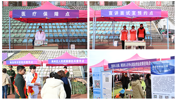 商洛軍分區(qū)副司令員陸樂樂、商州區(qū)人武部上校政委高運(yùn)鋒、商洛市人社局四級(jí)調(diào)研員張利民、商洛市就業(yè)管理局副局長李榮軍、商洛職業(yè)技術(shù)學(xué)院學(xué)生處處長張靜、商洛市人才中心副主任董毅、西安市職介中心公共就業(yè)服務(wù)部副部長鄧方園等參加了招聘會(huì)有關(guān)活動(dòng)。