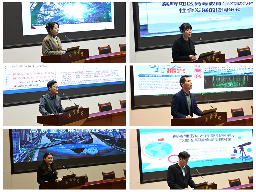 楊瑛娟、商哲、楊憲華、屈正庚、吳茜五位教師和盧科谷同學(xué)分別就商洛紅色旅游開(kāi)發(fā)、秦嶺地區(qū)高等教育與區(qū)域經(jīng)濟(jì)社會(huì)協(xié)同發(fā)展、商洛市域中小學(xué)心理健康教育、商洛森林康養(yǎng)產(chǎn)業(yè)發(fā)展、賽事名城建設(shè)助推商洛經(jīng)濟(jì)高質(zhì)量發(fā)展、商洛地區(qū)礦產(chǎn)資源保護(hù)性開(kāi)發(fā)與生態(tài)環(huán)境修復(fù)等主題進(jìn)行了學(xué)術(shù)交流。