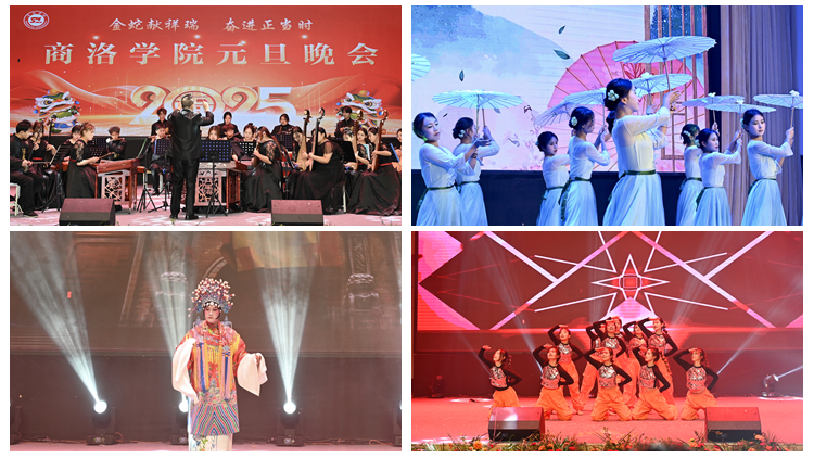 晚會(huì)在民族管弦樂(lè)曲《金蛇狂舞》熱情洋溢的節(jié)奏和《上春山》悠揚(yáng)動(dòng)聽(tīng)的旋律中拉開(kāi)帷幕。歌舞表演、詩(shī)歌朗誦、戲曲聯(lián)唱、相聲小品、樂(lè)器獨(dú)奏等節(jié)目輪番上演。師生同臺(tái)聯(lián)歡,以豐富多彩的節(jié)目、絢麗華美的視聽(tīng)效果,展示2024年學(xué)校發(fā)展成就,展現(xiàn)師生拼搏奮進(jìn)的精神風(fēng)貌,為全面推進(jìn)學(xué)校高質(zhì)量發(fā)展、加快推進(jìn)“一流學(xué)院”建設(shè)凝心聚力,共同迎接和展望嶄新的2025年。