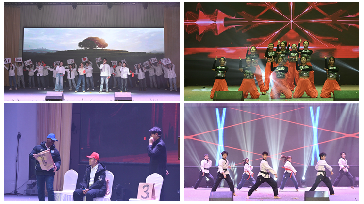原創(chuàng)詩(shī)朗誦《遇見(jiàn)》,在時(shí)光長(zhǎng)河的波光里回顧了學(xué)校發(fā)展歷程,歌頌了2024年逐光而行的不凡成就,激勵(lì)廣大師生與學(xué)校一道載夢(mèng)飛翔。舞蹈《額爾古納河》展現(xiàn)了祖國(guó)山河的壯美與柔情,體現(xiàn)出人與自然的和諧共生。歌劇《沂蒙山》選段演繹了革命戰(zhàn)士大青山突圍、淵子崖戰(zhàn)役的崢嶸歷史?!段业拇髮W(xué)時(shí)代》通過(guò)逗趣的相聲表演生動(dòng)再現(xiàn)了課堂奇遇、宿舍笑談的幽默時(shí)刻。明快靈動(dòng)的小合唱《唱得幸福落滿坡》,用歌聲把觀眾帶到了豐收的田野中,看到了農(nóng)民臉上洋溢的幸福笑容。二胡獨(dú)奏《戰(zhàn)馬奔騰》飽含著勇往直前的力量,訴說(shuō)著英雄們的壯志豪情?!稇蚯?lián)唱》將眾多藝術(shù)形式巧妙聚集,唱念做打、五彩臉譜,一招一式盡顯東方之美。外籍教師羅杰一、王亮、艾瑪和國(guó)際創(chuàng)意課程學(xué)生合唱《We are the world》,用音樂(lè)展現(xiàn)了超越國(guó)界和文化的團(tuán)結(jié)友愛(ài)。魔術(shù)表演《選擇》以絕妙的構(gòu)思、精湛的手法為觀眾帶來(lái)無(wú)盡驚喜。舞蹈表演《醉春風(fēng)》,在水墨煙雨中弄花影、戲春風(fēng),展現(xiàn)了草長(zhǎng)鶯飛、杏花春雨的江南美景?!读餍懈枨疅烦懬啻褐?,給燦爛的成長(zhǎng)歲月點(diǎn)燃生生不息的花火?!段鋭?dòng)華章》將太極的柔、雙截棍的巧、跆拳道的剛匯聚一處,在動(dòng)靜之間帶領(lǐng)觀眾走進(jìn)武術(shù)世界。健身操舞《青春就這young》整齊劃一的動(dòng)作、自信美麗的笑容,展現(xiàn)了商院學(xué)子積極向上的精神風(fēng)貌。