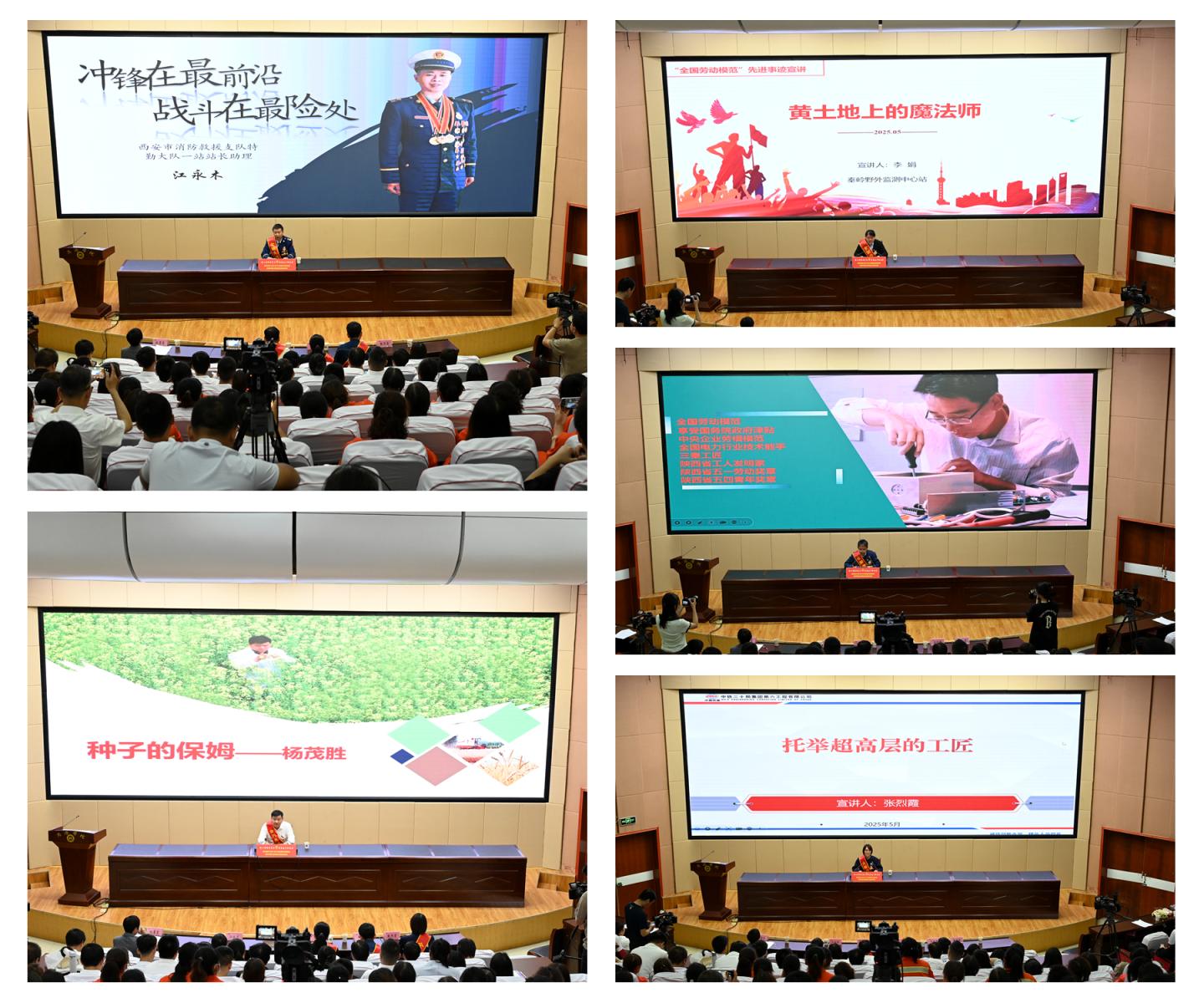 商州區(qū)和市直部分單位一線職工、農(nóng)民工、新業(yè)態(tài)人員代表,商洛學(xué)院相關(guān)職能部門負(fù)責(zé)人、師生代表共400余人共同聆聽勞模故事,汲取奮進力量。