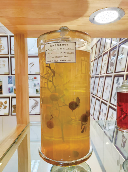 商洛,素有“秦嶺天然藥庫”的美稱。據(jù)相關(guān)人員介紹,秦嶺有中草藥1193種,其中大宗藥材256種。生物學(xué)院的秦嶺植物標(biāo)本陳列室收藏著上千份具有秦嶺特色的植物標(biāo)本、480份商洛主產(chǎn)的中藥材飲片標(biāo)本、18份土壤剖面標(biāo)本以及15份當(dāng)?shù)匚宕笏档乃畼?,全面展示秦嶺地區(qū)豐富的植物資源。
