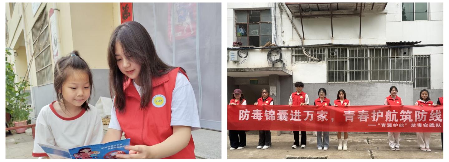 另一方面,各學(xué)院實踐團聯(lián)合地方政法部門,深入校園、社區(qū)和居民小組,以“微宣講+法治實踐”融合模式開展禁毒宣教,織密全民禁毒防護網(wǎng),讓“健康人生,綠色無毒”理念深入人心。