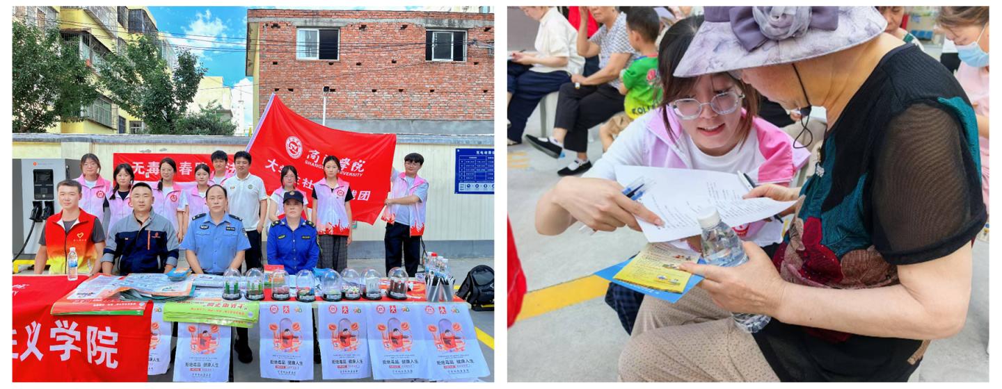 人文學(xué)院聯(lián)合區(qū)禁毒辦深入商州區(qū)職業(yè)高級中學(xué),通過宣講、游戲、情景表演揭示毒品危害;在多個社區(qū)利用手冊、有獎問答、仿真模型等方式揭露新型毒品偽裝,實現(xiàn)“校園+社區(qū)”全覆蓋宣傳。