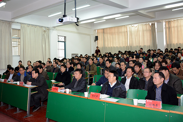 為進(jìn)一步推動(dòng)我校師生學(xué)習(xí)貫徹落實(shí)十八屆五中全會(huì)精神,12月9日,學(xué)校邀請(qǐng)陜西省委理論講師團(tuán)副團(tuán)長(zhǎng)黨寧教授為師生做了題為《貫徹落實(shí)黨的十八屆五中全會(huì)精神,為全面建成小康社會(huì)而奮斗》的專題報(bào)告。校黨委委員范新會(huì)、王思懷、魏書堂、彭虎軍、劉寶盈、劉端森、高榮發(fā),全校科級(jí)以上領(lǐng)導(dǎo)干部、輔導(dǎo)員,思政部、人文學(xué)院政教系全體教師,“青馬”工程學(xué)員和學(xué)生代表聽取了報(bào)告。報(bào)告會(huì)由紀(jì)委書記王思懷主持。