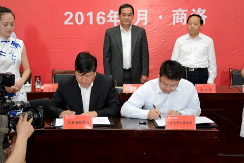 陜西省委高教工委辦公室,省教育廳高教處、財務(wù)處、發(fā)展規(guī)劃處、基教一處等有關(guān)處室負(fù)責(zé)人,商洛市發(fā)改委、規(guī)劃局、教育局、科技局、工信局、財政局、國土資源局、建設(shè)局、衛(wèi)計局、商丹園區(qū)管委會等政府部門、單位負(fù)責(zé)人,根植地方行動計劃合作單位代表,師生代表等參加簽字儀式。
