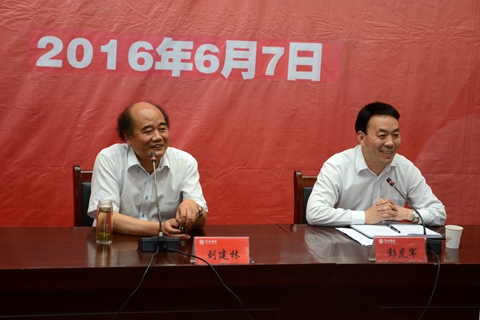 在談到加強(qiáng)校園基礎(chǔ)設(shè)施建設(shè)的話題時(shí),劉建林指出,學(xué)校已經(jīng)明確了三校區(qū)辦學(xué)布局,丹江校區(qū)和張村校區(qū)的征地建設(shè)事宜正在有條不紊進(jìn)行,通過校地合作等方式建立了棣花實(shí)踐教學(xué)基地,教學(xué)用地和設(shè)施已經(jīng)有了較大改善。2015年學(xué)校開工建設(shè)了總面積5萬平方米的綜合教學(xué)大樓、青年教師公寓和學(xué)生公寓,最近已經(jīng)順利封頂。假以時(shí)日,我校的校園面貌一定會(huì)有一個(gè)巨大的變化。