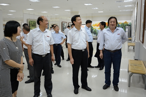 莊長(zhǎng)興興致勃勃地參觀了商洛紅色文化資料館、商洛文化暨賈平凹研究中心和藝術(shù)展廳。他對(duì)學(xué)校依托地方紅色資源和文化資源建設(shè)特色展室,開(kāi)展教學(xué)及科學(xué)研究工作給予了充分肯定。他還與藝術(shù)學(xué)院師生親切交談,了解秦嶺畫派創(chuàng)作情況,勉勵(lì)師生靜下心來(lái),創(chuàng)作出更多更好的藝術(shù)作品。