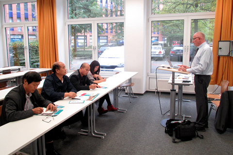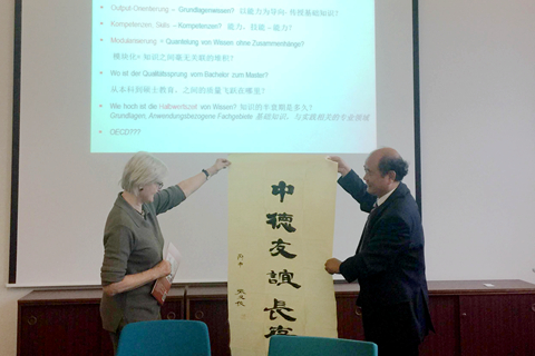 在德國柏林應(yīng)用科技大學(xué),劉建林一行先后前往兩個分校區(qū),分別與Hoffjann教授和Kammasch教授在應(yīng)用型人才培養(yǎng)過程中的教學(xué)質(zhì)量管理的模式、管理質(zhì)量管理的模式、工程教育及其教學(xué)法、應(yīng)用型教師的培養(yǎng)等方面開展了深入交流和探討,了解了《博洛尼亞宣言》后歐洲高等教育體系的改革和建設(shè)成果。