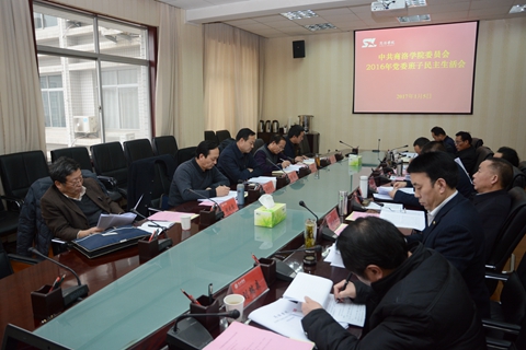 根據(jù)《中共陜西省委高教工委關(guān)于認真開好2016年度高校領(lǐng)導(dǎo)班子民主生活會的通知》有關(guān)要求,按照《商洛學(xué)院黨委班子2016年度民主生活會方案》,1月5日下午,我校召開了以“學(xué)習(xí)貫徹黨的十八屆六中全會精神”為主題的黨委班子2016年民主生活會。省委第九巡視組副組長周瓏,巡視專員韓升良、張曉黎,省委高教工委“兩學(xué)一做”學(xué)習(xí)教育第三督導(dǎo)組組長賈崇吉出席會議。會議由校黨委副書記、副校長范新會主持。全體黨委委員參加會議,黨政辦公室負責(zé)人列席會議。