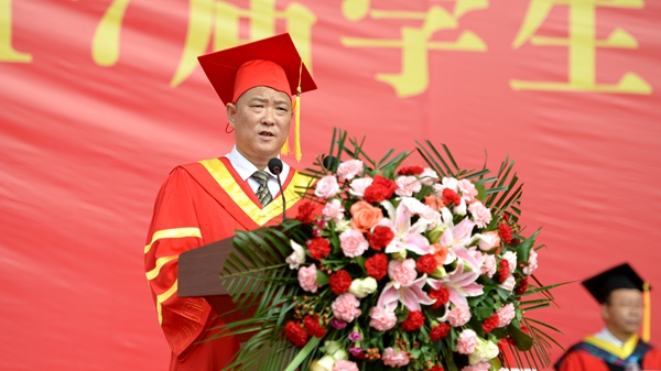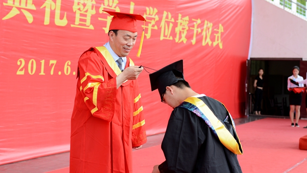 校長范新會以《永遠與母校共同成長和發(fā)展》為題發(fā)表了情真意切的講話,對即將步入社會的畢業(yè)生表達了最真摯的祝福。他深情地說,大學四年生活是人生中一段抹不去的記憶,是人生經(jīng)歷中不可多得的閱歷與財富,同學們也是學校歷史上不可或缺的重要一員!在過去的四年里,同學們在學校學習知識、增長才干、砥礪品格、收獲情誼。走向社會,同學們將用學到的知識、練就的才能去開創(chuàng)你們未來的事業(yè),同學們未來的成就將永遠是學校的驕傲和財富。