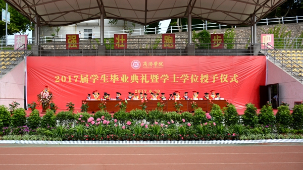 6月30日,我校隆重舉行2017屆學生畢業(yè)典禮暨學士學位授予儀式。校領(lǐng)導龍治剛、范新會、王思懷、魏書堂、彭虎軍、劉寶盈、劉勇出席典禮。各院(部)黨政主要負責人,校學位評定委員會委員,相關(guān)部門負責人,全體畢業(yè)生及畢業(yè)班輔導員、班主任參加典禮。典禮由黨委副書記彭虎軍主持。