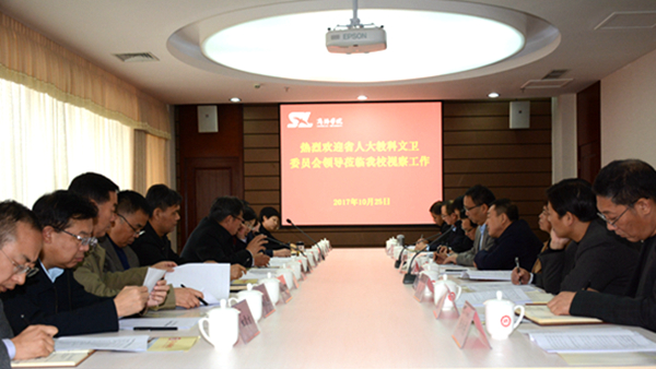 10月25日,陜西省人大教科文衛(wèi)委員會(huì)主任楊希文一行來我校視察。省政府學(xué)位委員會(huì)秘書長袁寧,商洛市副市長武文罡、商洛市人大教科文衛(wèi)委員會(huì)主任郭菊賢陪同視察。