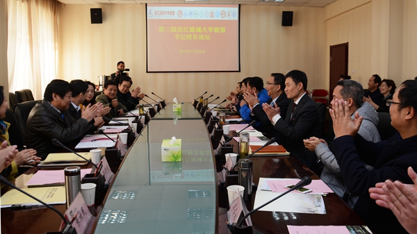 在書記校長論壇上,我校作為2018年漢江流域聯(lián)盟輪值理事長單位接受2017年漢江流域聯(lián)盟輪值理事長單位、南陽師范學(xué)院黨委書記黃榮杰授旗,副校長劉勇接旗;表決通過了湖北汽車工業(yè)學(xué)院作為2019年輪值理事長單位并成立新的秘書處,負(fù)責(zé)盟內(nèi)日常工作的開展。聯(lián)盟高校的書記校長以“深化合作,開拓創(chuàng)新,促進(jìn)漢江流域大學(xué)建設(shè)”為主題,圍繞“雙一流”建設(shè)與創(chuàng)新發(fā)展、應(yīng)用型人才培養(yǎng)與創(chuàng)新發(fā)展、師資隊(duì)伍建設(shè)與創(chuàng)新發(fā)展、高校治理體系法治化與創(chuàng)新發(fā)展、國際合作交流與創(chuàng)新發(fā)展、大學(xué)文化建設(shè)與創(chuàng)新發(fā)展、高校黨的建設(shè)與創(chuàng)新發(fā)展等議題分別作了主題發(fā)言。他們共同表示,聯(lián)盟高校要以黨的十九大精神為指導(dǎo),立足國家戰(zhàn)略和區(qū)域規(guī)劃,瞄準(zhǔn)區(qū)域經(jīng)濟(jì)社會(huì)發(fā)展需要,加強(qiáng)相互合作與發(fā)展,創(chuàng)新協(xié)同發(fā)展體制機(jī)制,實(shí)現(xiàn)優(yōu)勢互補(bǔ)、整體提升,開創(chuàng)互利合作共贏新局面。